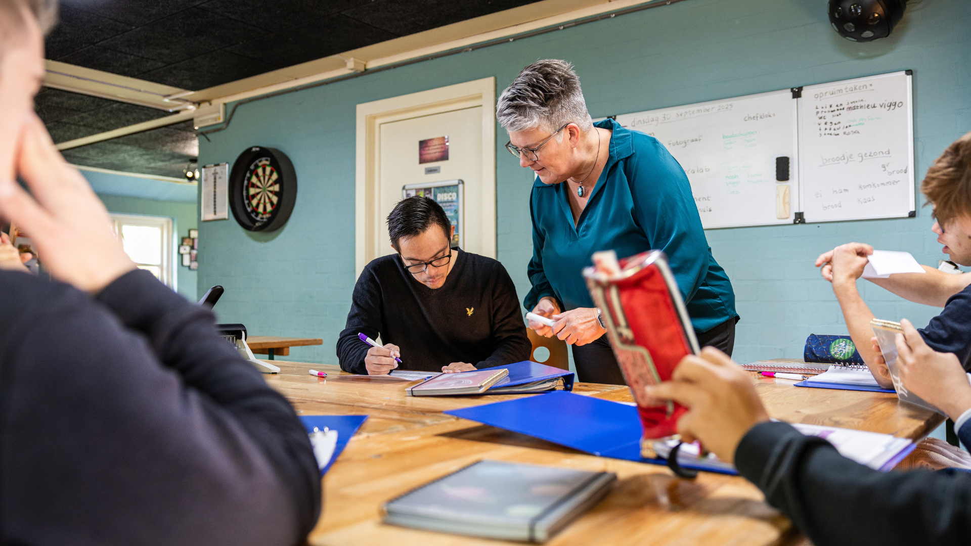 Marjon van Alfen is er projectmanager en leercoach. Ze werkt zichtbaar met plezier en geeft vol energie les. ‘Inclusie is mijn drijfveer. Het mooiste van mijn werk is dat ik jongeren kan coachen voor wie anders het leren was gestopt. Hoe fijn is het als jongeren toch een keuze hebben om te blijven leren en anderen te ontmoeten?’